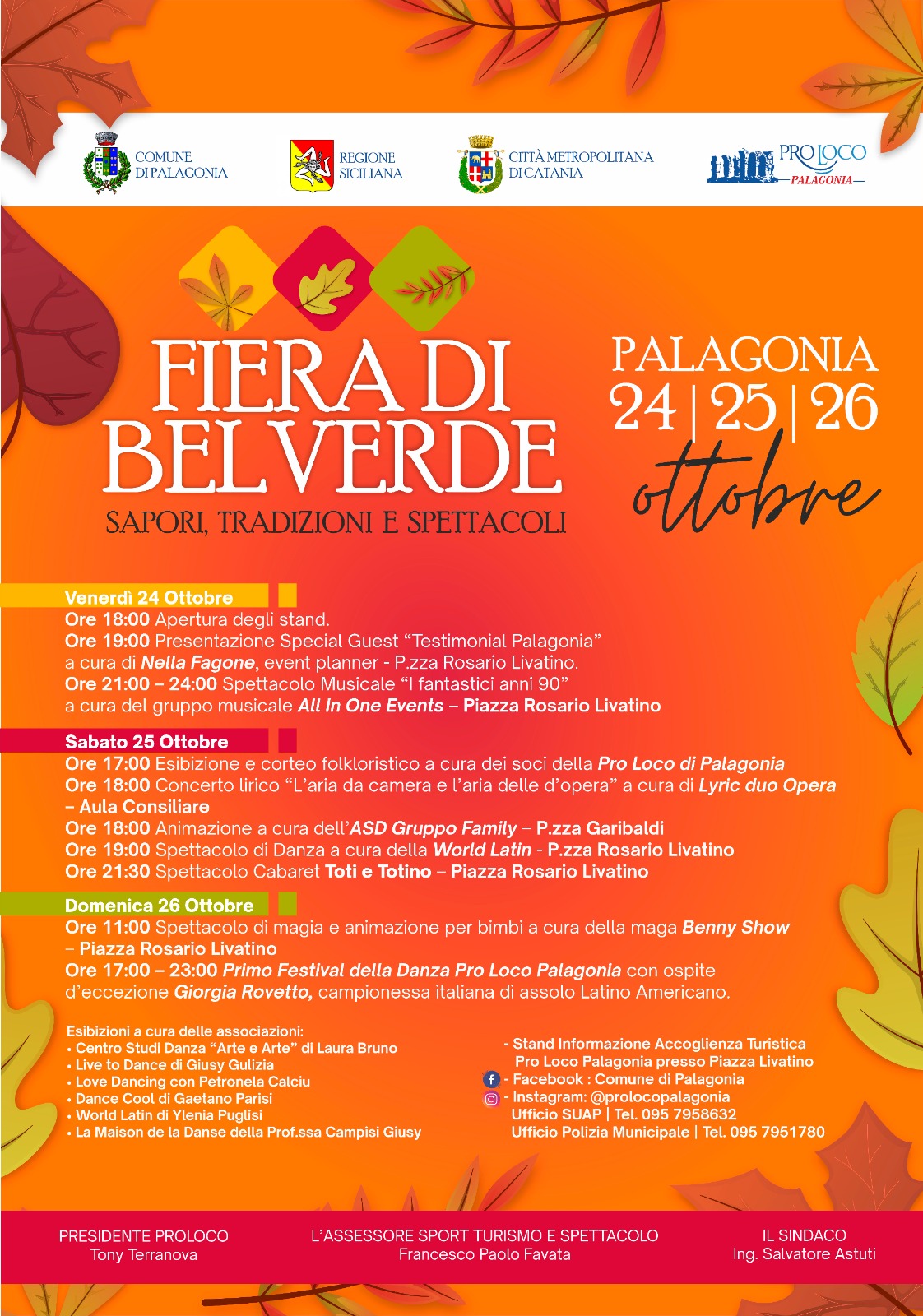 Il Comune di Palagonia, con la Regione Siciliana, la Città Metropolitana di Catania e la Pro Loco Palagonia, presenta la Fiera di Belverde: tre giorni dedicati a cultura, enogastronomia e spettacolo.