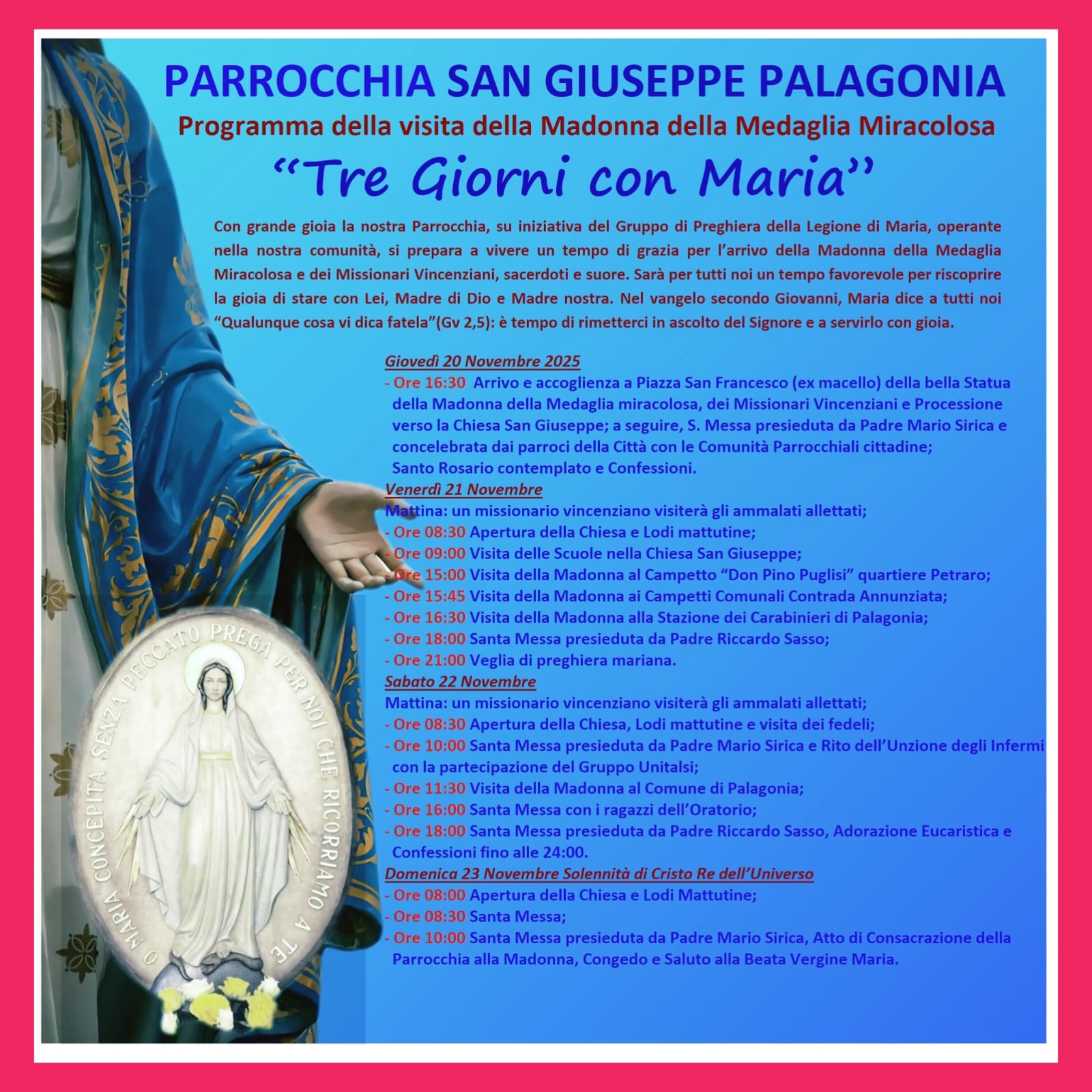 Ad integrazione dell’Ordine del Giorno, la visita in Aula della statua della Madonna della Medaglia Miracolosa a cura dei Missionari Vincenziani d’Italia.